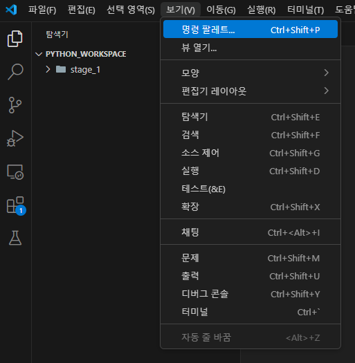 VSCode가 “어떤 파이썬을 사용할지” 선택하도록 인터프리터 설정을 해 줘야 합니다.
