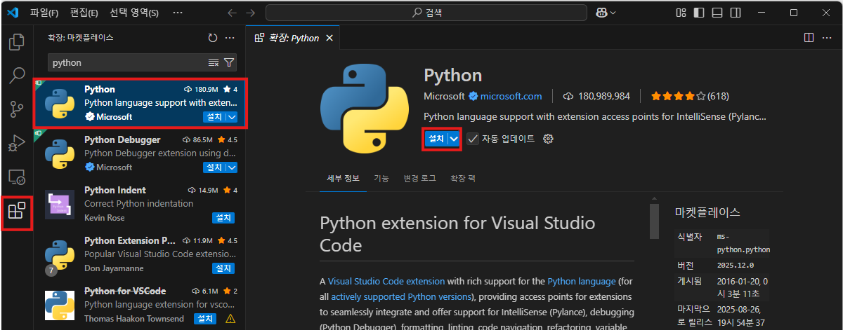저는 이미 vscode가 설치 되어있어서 자세한 화면캡처는 생략하였습니다.
