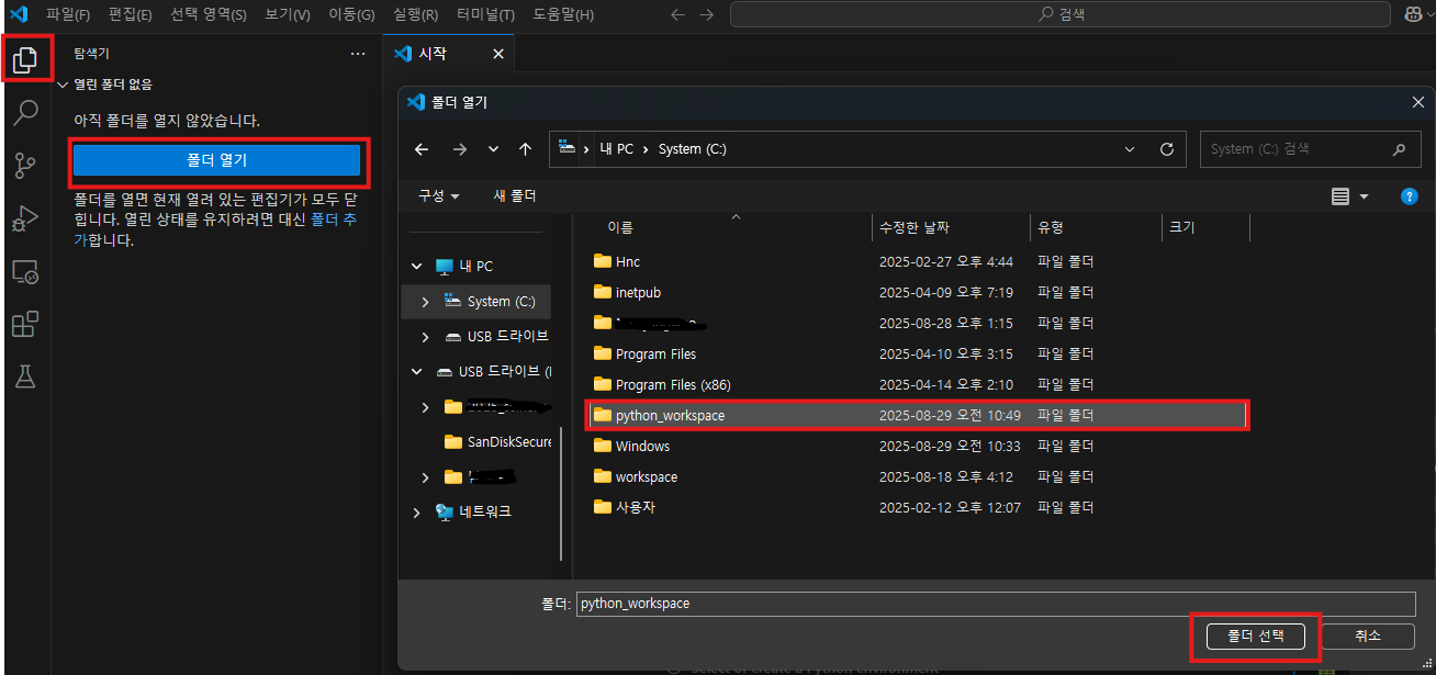 7. 작업할 폴더 지정(원하는 폴더 생성)
